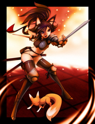 AWESOME!!!! Beautiful Anime-esque artwork! Kayin has always been playing the main role of 'saviour'. Carmessi looks both sexy and ruthless here. And Grace's image here definitely captures her plight. Nice background, too.