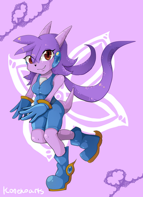 Man, she looks so OLD here! Clearly inspired by Megaman and with what looks like robotic un-feathered chicken wing. It says Second but it's still pretty much the first design for her.