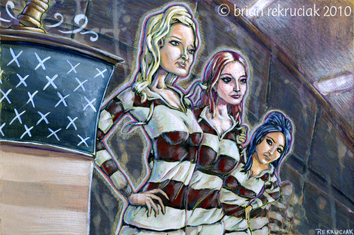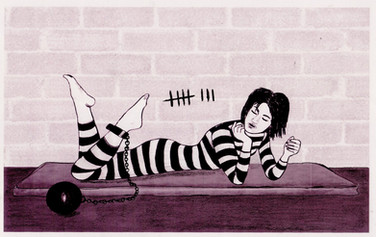 One of the features of my old and vanished site "Chamberlain's Underground" was a series of one panel images, done in shades of black, grey, and white named "The Grey Zone." These were supposed to be humorous. The caption for this one was "I think we're waiting for someone to come up with a punchline." Ha-ha. Very "meta."After all this time I came up with another: "Oops. I think we're out of order!" Comedy gold... Nonetheless, I rather like the design for these prison slaves.