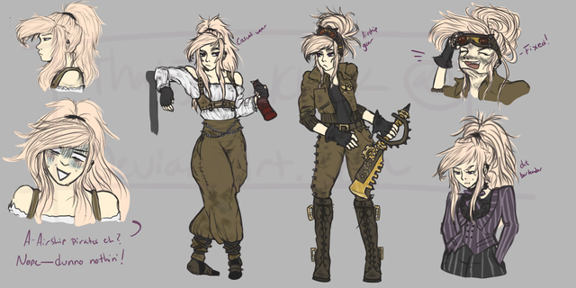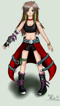 no se exactamente de que va el concurso, pero creo que tienes posibilidades. el diseΓ±o de la ropa estΓ‘ fenomenal, y la estetica steampunk creo ke le pega mucho a rikku. me gustan en especial esa ombrera con escape de gas y la espada.