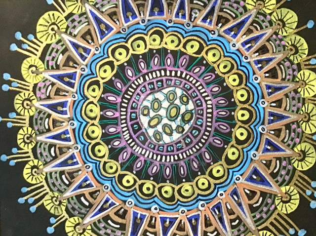 Acrylic on glass. This is one of those times where I use the other end of a paint brush. Who am I kidding, I mostly do that nowadays.This image is © Amy Holysz. Do not use without permission.