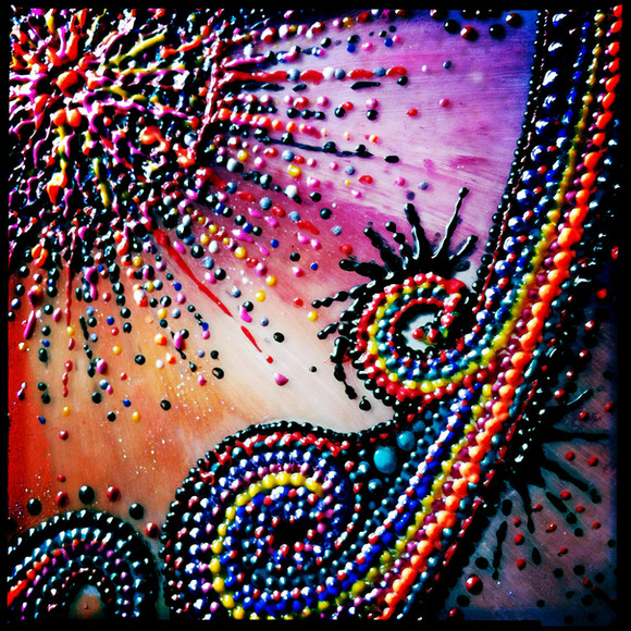 Mixed media on plexiglass. Don't invite this little fellow over for dinner.This image is © Amy Holysz. Do not use without permission.