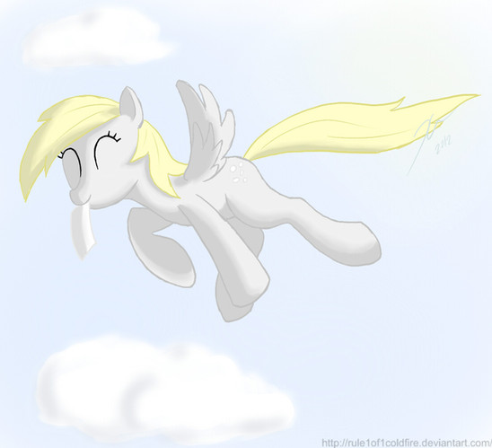 I never realized how big this was.Anyway, Derpy's my favorite pony, so I love drawing her. I did the same thing as 'Applejack in all Seriousness': I drew the pic and scanned it in instead of using my tablet. I did use the tablet for the clouds, though. Oh yeah, the bubbles, too.