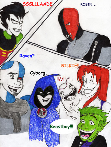 naybe they where at the mall and got these done. I dunno. what ever, it's the teen titans, I tried to draw them cute, and in my opinion I suceeded. I would have coloured it but im on my sis's computer cuz mines in the shop and my sis's comp doen't have the same art programs.(in other words, I have no idea how to work hers.) don't they look cute when they blush? lol.EDIT: okay this thing was being a total bitch and wouldn'tshow up for the longest time, and now it will yey! I made the font bigger so It's easier to read. toodles