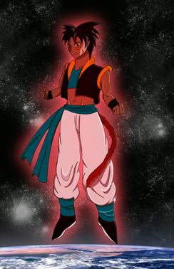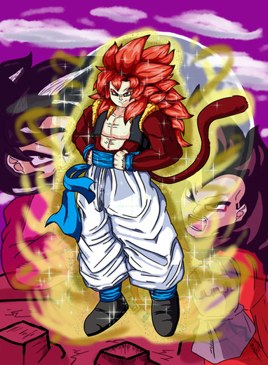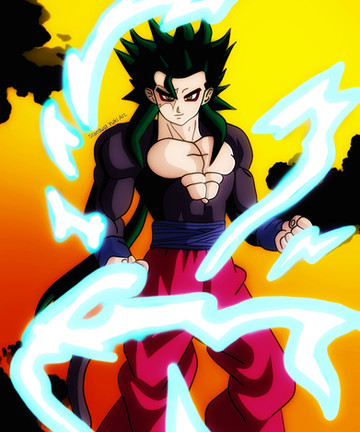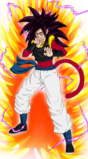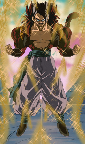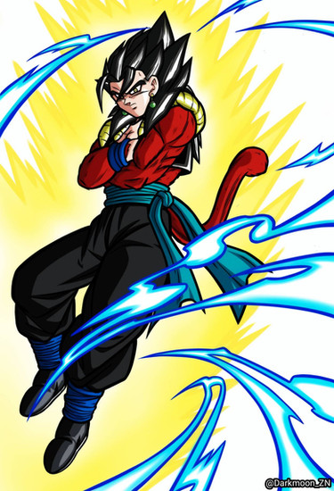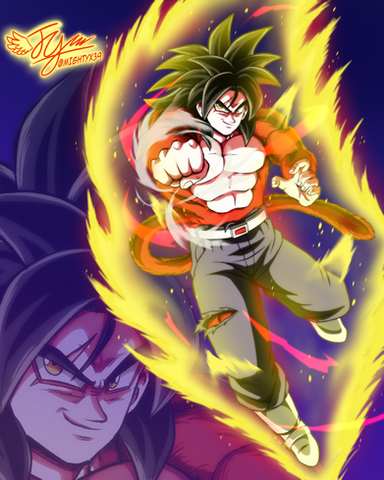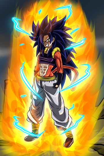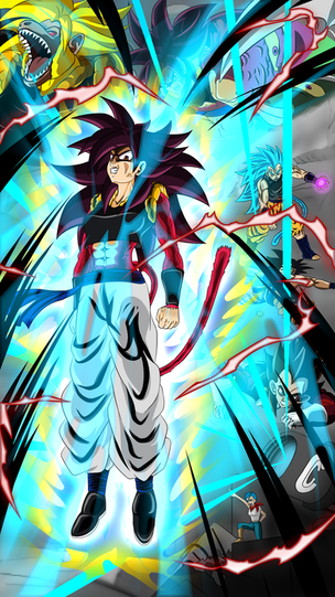 As this happens Zamasu just about to land the finishing blow on the Saiyans senses this immense power going crazy and destroying the abandoned city. Interested in what was happening and how Raunks could become so powerful out of no where flies toward them before finishing off the Saiyans. Vegeta and Raditz barely able to walk or crawl get over to the barely breathing Goku. Vegeta explains what's probably happening and asks Goku if he could take them there with Instant Transmission. Zamasu finding a Golden Great Ape and gets confused as never knowing that Saiyans could do that. Then after seeing Bulma, he gets mad and asks how Raunks was able to get so strong so quickly. Bulma unwilling to divulge the information Zamasu begins to choke her saying he'll do the same to her as he did with Future Bulma Ape Raunks sees this, but before Raunks was able to react Vegeta side kicks him in the face sending him flying with Raditz behind and blast him and he flies. Ape Raunks seeing Raditz remembers the day he was killed and remembers all that had happened since then. Zamasu then fights back getting the drop on Raditz and Vegeta as they try to talk to Ape Raunks. After seeing Raditz and Bulma in pain and remembering everything, in a fit of rage Raunks finaly regains consciousness and completes the SSJ4 Transformation though with a blue arua as the figure walks out of the smoke with rage in her eyes, SSJ4 Raging Raunks is born.