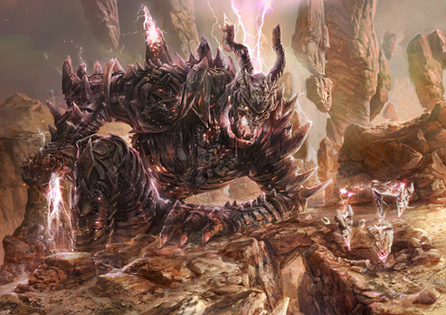 Practice with non-humans, rock textures, and depth. Inspired by the GW2 dragon, Kralkatorik. As far as I know, there's no real concept art of him that's been released. Just having fun making a design based on his traits of being a jerk, and his minion, The Shatterer.Related content
