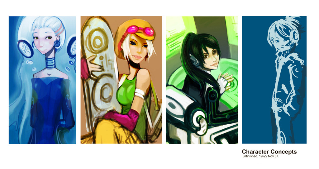 Here are the designs for a few of the main characters in Channel^Square...I totally forgot I had these to upload, they're just been sitting around