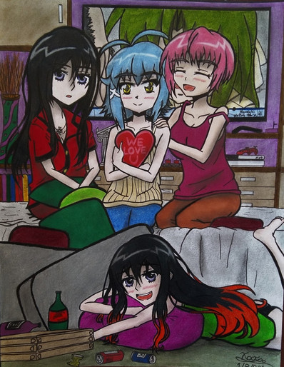 "I feel like something is lacking in this picture. Like maybe the walls are too dull and it's making everything else dull, or maybe the way I'm coloring the characters don't seem like they're as vivid as I'd hoped. What do you guys think?"