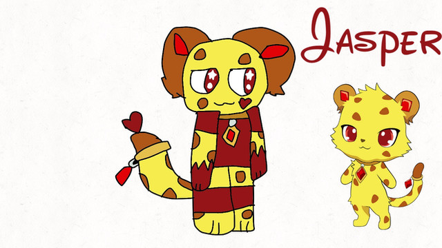 Here's another Jewelpet picture. I like Jasper, but from the episodes of Jewelpet Sunshine I've seen, or read about, I dislike his character. I feel like he should be the type of character who's cool and calm all the time instead of getting into arguments about the way someone should eat curry. >.>Jasper is a cheetah.