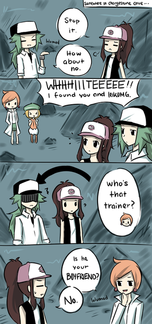 This is so cute and funny. I don't know why people like N and the boy together, that's just creepy. Not like I'm against people like that but come on, this is supposed to be a kids game x3