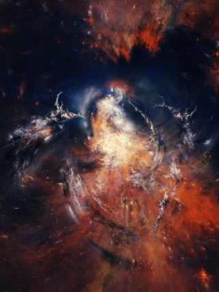 I'm not sure why there's such a bright spot at the lower left, perhaps I forgot an opacity check on one of the iterators. Β It could be a tornado, or if we're viewing this galaxy from a planet, it could be a cloud in the sky or something as well!