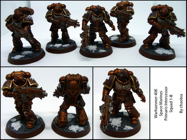 I made these due to my mate who was may first major 40K opponent. He collects dark angels. And so, as a chaos player, i proceded to paint all my SM trophys dark angel green (that got a grin). I desided to make this squad partialy as a tribute to my friend, but also because i loved the look of the kit.