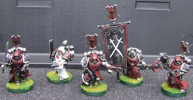 I can't say how pleased I am that you gave them right colour armour. It irks me no-end to see Fallen Angels painted green. I still don't understand why Games Workshop themselves paint Cypher green. The dark tones overall on yours makes them look nice and moody; because if a Dark Angel is moody, a Fallen Angel should be moodier! . Also, I'm quite keen on your limited use of chaos components. I've seen plenty of Fallen Angels that are basically just Chaos Marines with Dark Angel icons and it doesn't seen very imaginative to me. This is far more subtle. Afterall, they are supposed to be able to be mistaken for genuine Dark Angels at a quick glance...