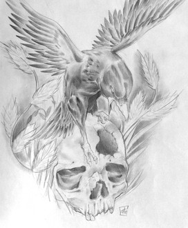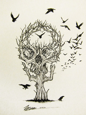 #airbrush #black #dark #edding #fineliner #marker #raven #skull #tattoo #white #chaoth #art