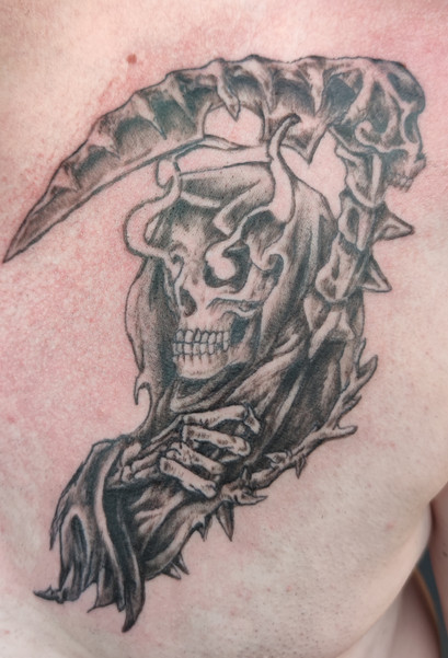 Tattoo-redesign for my cousin using a reference from google, og artist unknown!Pencilscetch, Fineliner and Edding for linework and some b/w airbrush to give it more depth.