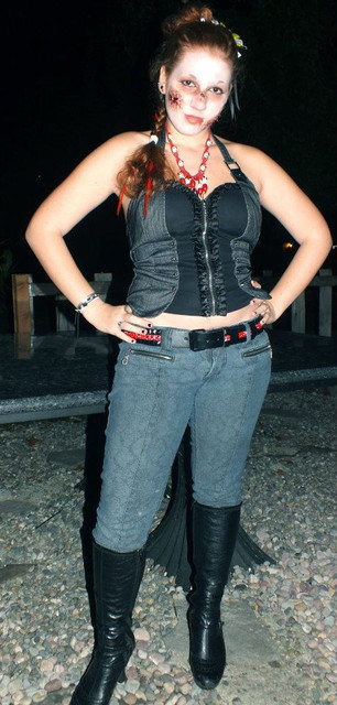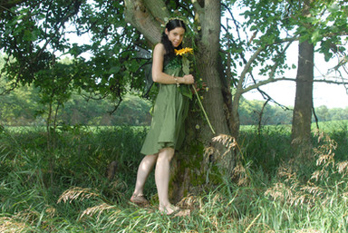 Just me, outside with a chair and lots of leaves and a ten second self timer. Plus wet hair and a short skirt... was freezing!Enjoy.