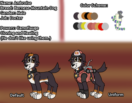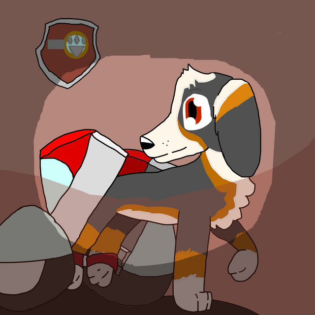 This Bernese mountain dog is the prince of the high seas. Not having use of his hind legs doesn't stop him, Sid had him outfitted with two super dope peg legs. His mission is to search for treasure and help restore it to museums or even keep the odd bone for himself. He speaks many sea creature languages and adores them all.my second fav au pup teehee