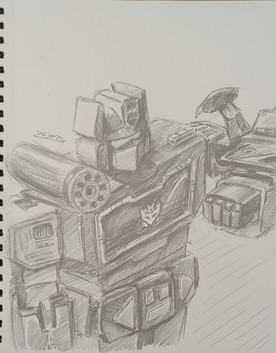 was reading the hail megatron comics, like this panel....because a distraught soundwave over a dead cassette is always cuteagain quick pen drawing took me 30mins... great what I cand raw when im on a train going to see the boyfriend