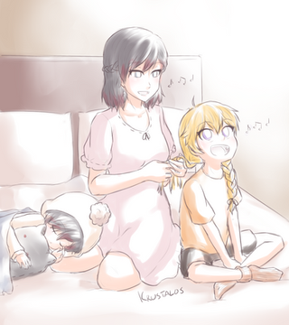D'awww! Β This is so adorable! Β I wonder who'd tie up Qrow's hair, though.