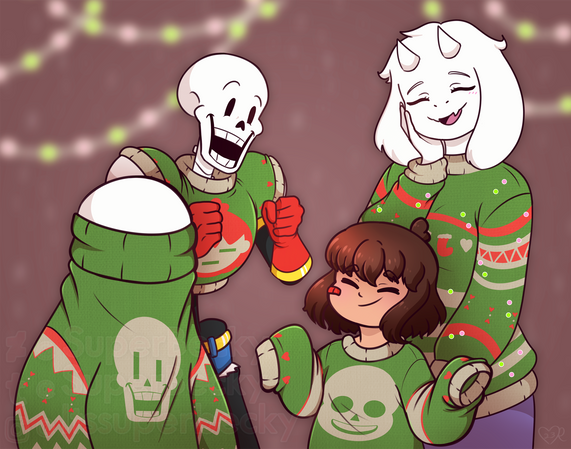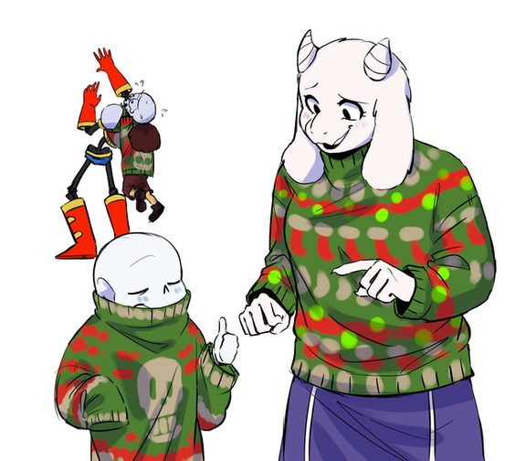 aww they so cute in the sweaters :3 I like to think that Sans and Paps become Frisk's adoptive brothers :3