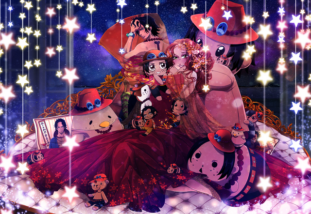 Haha yeah, Katakuri usually carried Rose, so gotta keep it up, by having her lie on Big Tsum tsum Katakuri and well gotta reverse it too with chibi Katakuri in her hand I seriously love Hato though, still I find it overly adorable for Chibi Ace being near Hato's lips, ready to kiss his love
