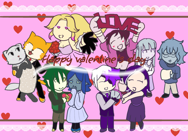 WELL THEN!!! It is yet again Valentine's day and this time I'm not just drawing my own ocs and I am even drawing 17 ocs in total too (plus the Huge plush Edward ) I ended up adding a lot of pink because of Valentine's day and some red too, though obviously not as much, tried it, found it too strong a color so added some blue and gold in instead These girls you see here are ALL of the New Spade Pirates started by + an honorary member (Yaya ) I myself is pleased with the result and hope you guys like them as well Please do like it , really worried and want to make sure that I did all the girls justice, but anyway IT WAS STILL FUNCouples + Info (right to left):