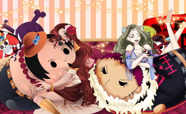 · Roronoa Mayura – Sitting with rabbit Plushie, while eating Matcha Chocolate and sitting on a huge tsum tsum Edward (They a Couple )