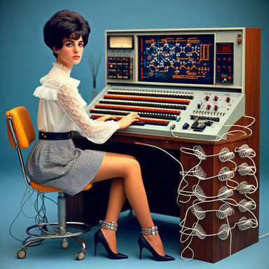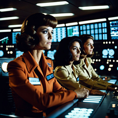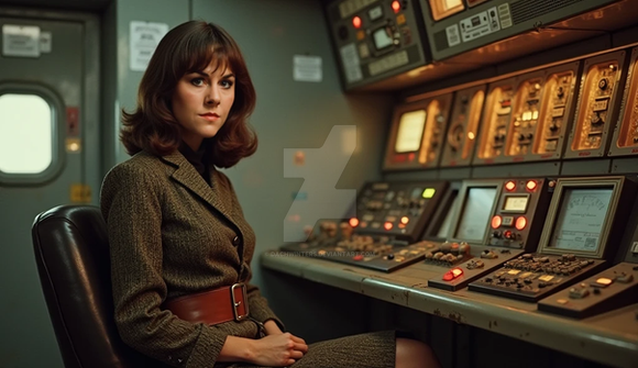#vintage #scifi #beauty #1970s #1980s #computers #control #controlroom #controls #crossedlegs #crosslegs #equipment #headset #sitting #woman #work
