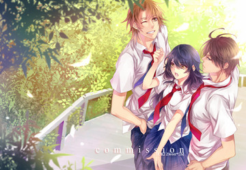 Hi everyone! This is my entry for the Summer Romance Fanart Contest. I know Issei and MC looks awkward in this but I hope everyone likes it. Haha!This is a fan art of Issei Sezaki (Kiss of Revenge), MC and Ayato Hidaka (My Last First Kiss). These are the games that I enjoyed from Voltage Inc.