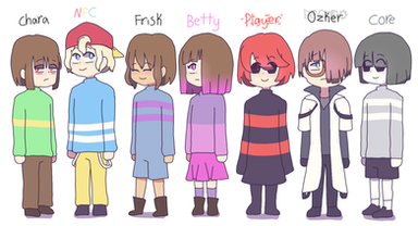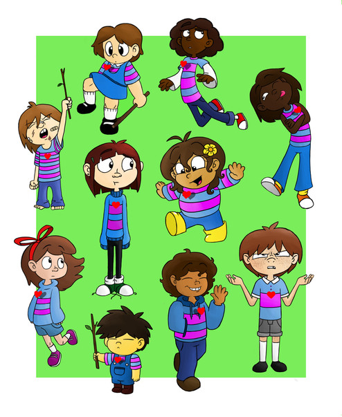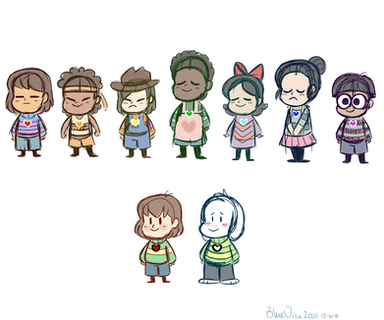 I resolved to make my version of all the humans, added the others too just because.*Chara and Frisk you all already know, the red humans from the original game.