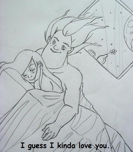 Awww. I love his little 'pep talk' there. It was really sweet. Sounds like him too. ^^ And the drawings are so good!! Like, I love how he's touching his forehead to hers and holding onto her hand like that. It's just so adorable and tender and sweet!!! I can't handle it! xD