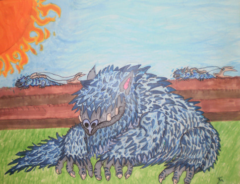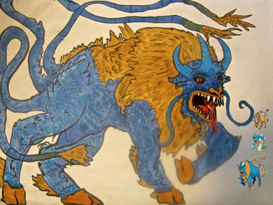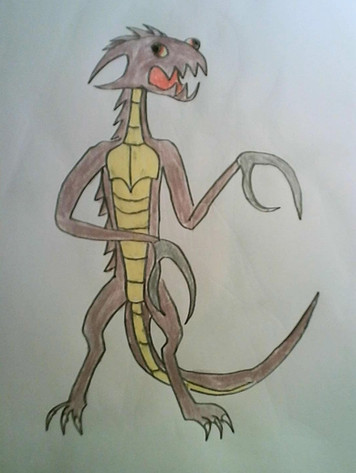 Dreigore is my mighty kaiju. It is a fusion of two kaiju, King Ghidorah and Orga. He has three heads and fires gravity bolts out of his mouths. Dreigore is extremely durable and kick serious monster butt.Orga devoured the missing King Ghidorah head (Destroy All Monsters) and he grew 2 new heads out of his shoulders.