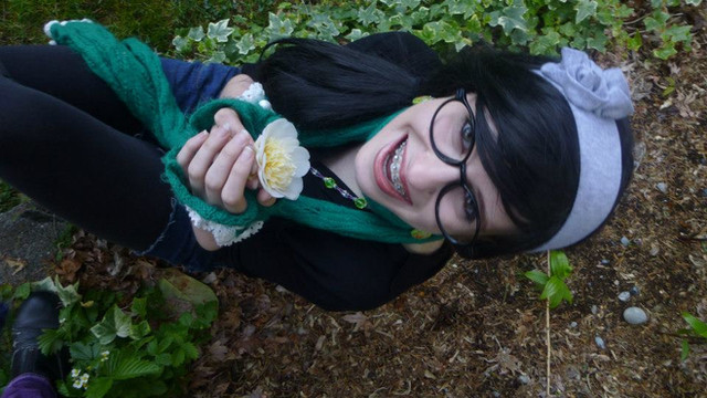 Knee high stripy socks.