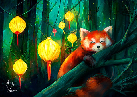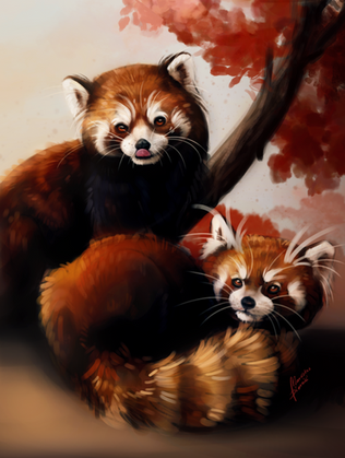 I love the details in the fur of the red panda, and also that it looks really adorable! >w<