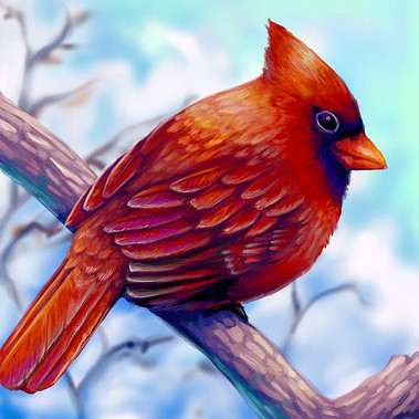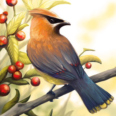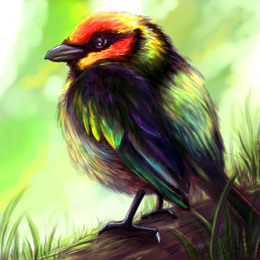 The "judgmental birds" you see in the tree branches are also from the Atlanta Zoo living treehouse aviary. Which are Superb starlings found in north-east Africa. The red panda is native to the eastern Himalayas and southwestern China. In no way would these 2 animals ever see each other in the wild. But because I took a ton of photo refs that day, I used them both in this painting purely because they had similar color schemes and looked amazing together as a pair. Using my artistic license on this one and because the birds are seriously judging you.