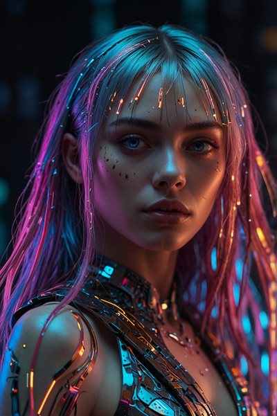 #digitalart #portrait #cyberpunk #ai #android #augmentedreality #characterdesign #conceptart #cybernetic #femmefatale #futuristic #holographic #neonlights #scifi #scifiart #silverhair #cyberpunkgirl #neoncity #virtualfashion #synthskin #techwear #cyberpunkcharacter #rogueai #glitchaesthetic #cyberpunkportrait #cyberdystopia #chromeaesthetic #dystopianvibes #bladerunnerstyle