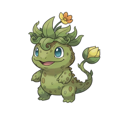 Description: Spriggle, the Sprout Shinwamon, is as endearing as the first green shoots of spring. This tiny Shinwamon's cheerful hops and curious eyes make it a favorite among young trainers. Its leafy appendages are soft to the touch and exude a fresh scent that can rejuvenate even the weariest of travelers. Spriggle is often found nibbling on fresh leaves, its diet contributing to the vibrant patterns on its body that blend seamlessly with the lush underbrush of its natural habitat.