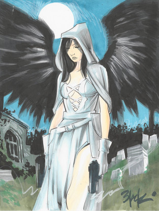 #blackhairedgirl #blueeyedgirl #comiccharacter #darkhorsecomics #dawn #ghost #graveyard #guns #sharpie #paleskinnedgirl #masterstouch #dark_horse_comics