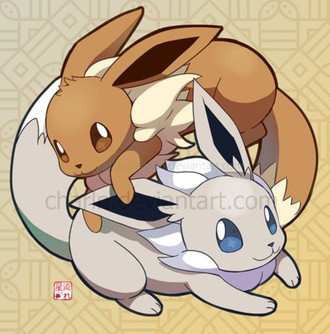 Aww!!! They are so cute!!!!!! X3 Glaceon it's so adorable too~! And i love that bowie in Eevee! <3