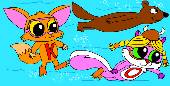 Sully and Kitty decided to teach their son, Kenny, how to swim. They have a pool in the backyard for him to practice in. Kenny sure seems to enjoy himself splashing in the water. It's also a good thing he's wearing a life-vest.Sully and Kitty-Danger Rangers