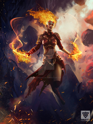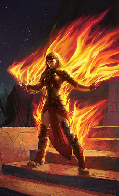 Oh to have that kind of control over fire. Love her hair, and her armour!