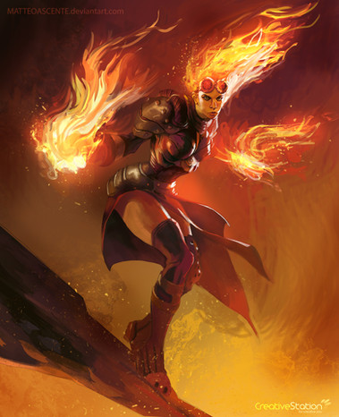 Your rendering of the fire is incredible, and I love the attitude in her pose. Fantastic piece!