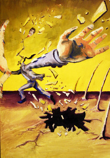 Wonderful, mystical colours! It's a simple idea behind but it's not difficult to start creating paths to different symbols an interpretations; this could be God's fist with the grasshopper reminding about the plagues, or simply something like mother nature strikes back. But really, an interesting piece of art