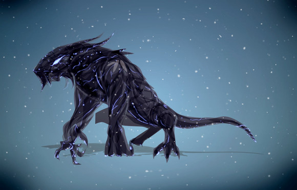 I love the structure of this robot, it gives a feeling of weight and movement. It's strange what well-placed lines can do to the mind. Also I really like the blue running all over the thing, it seems like it's gathering at the tail and the robot is ready to zap someone with electricity. That double knee thing that the hind legs have is interesting too, it makes me wonder how it would look on a real animal. Here it looks very functional.