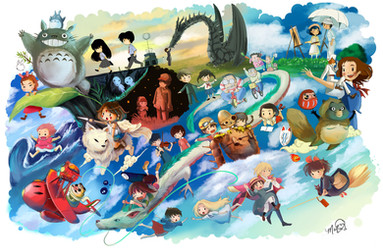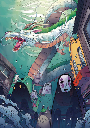 I have been watching and re-watching everything from Studio Ghibli since "Spirited Away" blew my mind as a teenager. It was great binging all the films again as I worked on this painting. I especially love how many of them really take their time with quiet little moments things- like Ponyo making Ramen, or Nausicaä encountering an Ohmu shell and carefully removing a piece. So well done.