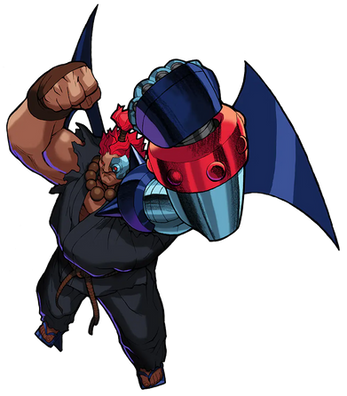This unit was created along side the fighting robot Gouken-01 as part of a secret project known as the Ansatsuken Initiative. This unit uses SMI (Surge of Murderous Intent), a malicious type of software that gave the robot a simulated bloodlust and a desire to fight. After experiencing the death of multiple containment squads, along with the dismantlement of multiple other combat robots, members of the Ansatsuken Initiative had Robo-Akuma shut down after the Gouken-01 unit had successfully defeated it, its software changed to something more passive for Gouken-01. However, many months later, the SMI software somehow managed to free Robo-Akuma of its creator's control, and reactivated it. Now free of anyone's control, he set out to find the Gouken-01 unit, who had been training new units Stardragon (Nicknamed Ryu) and Masterfist (Nicknamed Ken). It eventually found Gouken-01 and in the midst of its battle with it, developed a powerful weapon known as the SGS(Shun Goku Satsu) Drive. Using this led to the dismantlement of the Gouken-01 unit. It now searches for Stardragon, knowing that his SMI software was still vulnerable, and hopes to reprogram it to that of Robo-Akuma's own...
