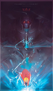 This is the best fan after I've ever seen for this series! Most fan arts of this are reds and yellows and have Ed and Al and love like an action comic, but this shows the darkness and sadness that the series of really about! Love it!