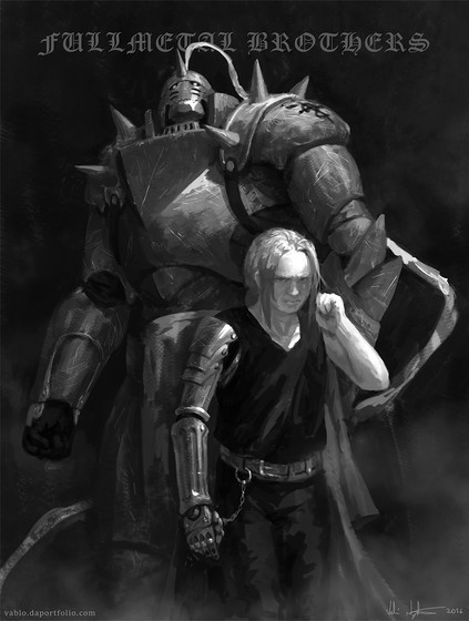 Fullmetal was one of my very fist big anime binges. A neighbour down the hall in res lent me all the dvds, and I quickly devoured em.Β Was a big fan of the series (and brotherhood too), and have been meaning to do a piece based of the series for a long time now, but I find that the more you like a series, the harder it is to make art for it.