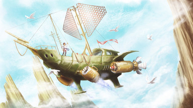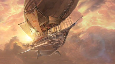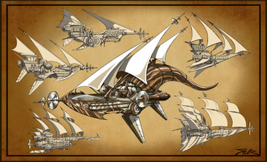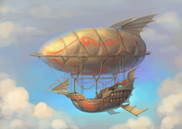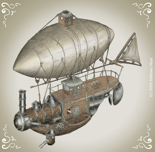 Seems like a combination of a steampunk, Chinese Junk, and European pirate Ship. Very Creative.