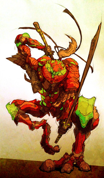 Oh that's so cool, it's a little animalistic but in a jeuvanile way, and his pose is evocative of a more impulsive fighter.